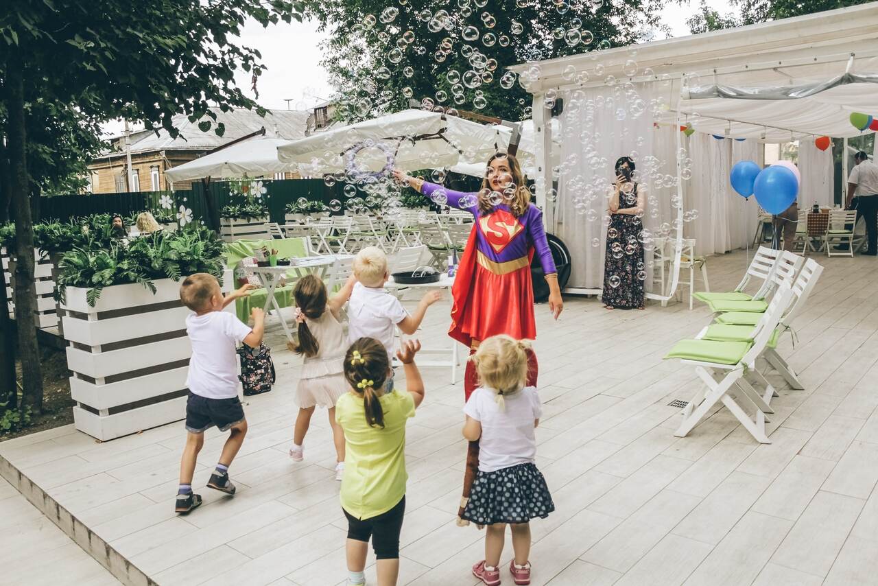 Музыка была современная, дискотека, конкурсы, организовано всё на ура. И вынос торта со свечами и фотографии с ростовыми фигурами. Дети были счастливы, что побывали на таком празднике. Мы не ожидали, что будет так весело. На таком празднике мы были в первый раз. Ещё раз огромное спасибо за мероприятие!!!